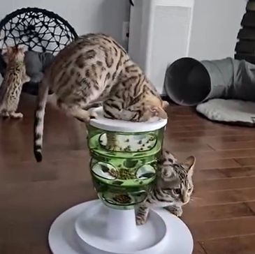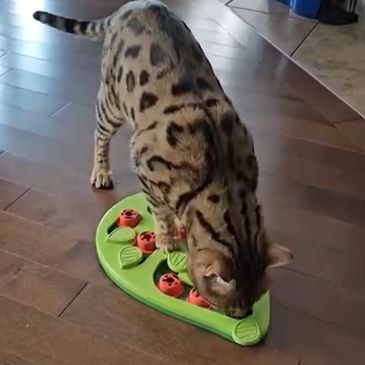 We use this to stimulate our cats to work for treats. A great way to keep them entertained although some cats may like more of a challenge. Our kittens think they can crawl through the top to get their treats!