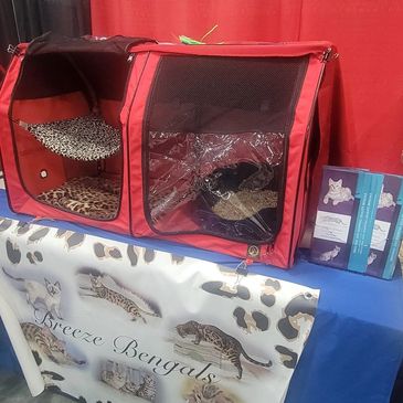 We have 2 show tents like this and they work great for traveling far if you have the space to set it up in the vehicle. There are straps on the back to use with a seat belt. There is enough room to keep a small litterbox and space to move around still.